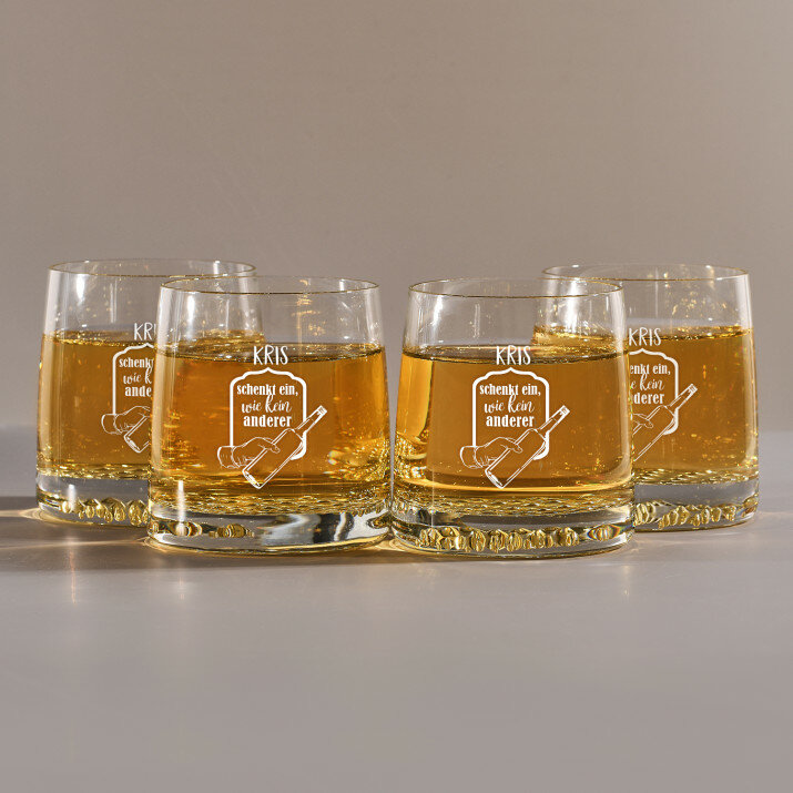 Das beste Geschenk für einen Alkoholgenießer der ersten Klasse. Ein Schluck Ihres Lieblingsgetränks schmeckt aus dem personalisierten Whiskyglas noch besser und die Verarbeitungsqualität als auch das Erscheinungsbild des gravierten Glases erfüllen die Anforderungen jedes Kenners.AUSFÜHRUNG